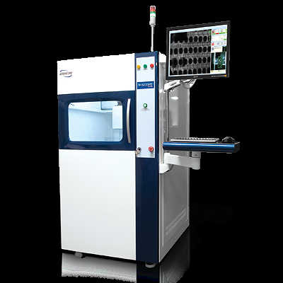 目前使用較多的X射線(xiàn)檢測(cè)儀有兩種,一種是直射式X光檢測(cè)儀,一種是3D-X光分 層掃描檢測(cè)儀。前者價(jià)格低,但只能提供二維圖像信息,對(duì)于遮蔽部分難以進(jìn)行分析,而后 者可以檢測(cè)出焊點(diǎn)的內(nèi)在缺陷、BGA等面陣列器件隱藏焊點(diǎn)缺陷以及元器件本身相關(guān)內(nèi)在缺陷。